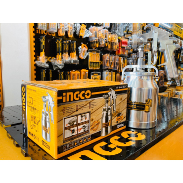 Súng phun sơn INGCO ASG3102 với dung tích lớn 1000cc, thiết kế linh hoạt và tùy chọn đầu phun đa dạng, là công cụ lý tưởng cho các dự án sơn quy mô lớn và sơn lớp nền.